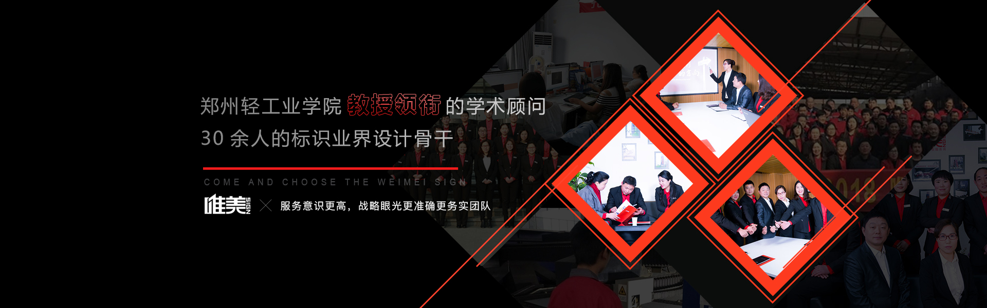 鄭州唯美標(biāo)識設(shè)計(jì)制作有限公司是一家專注從事地產(chǎn)住宅、商業(yè)廣場、商務(wù)辦公、醫(yī)院系統(tǒng)、學(xué)校文化、工業(yè)園區(qū)、市政交通、旅游景區(qū)、酒店餐飲、銀行金融、城市環(huán)境標(biāo)識標(biāo)牌系統(tǒng)規(guī)劃、設(shè)計(jì)、制作、...